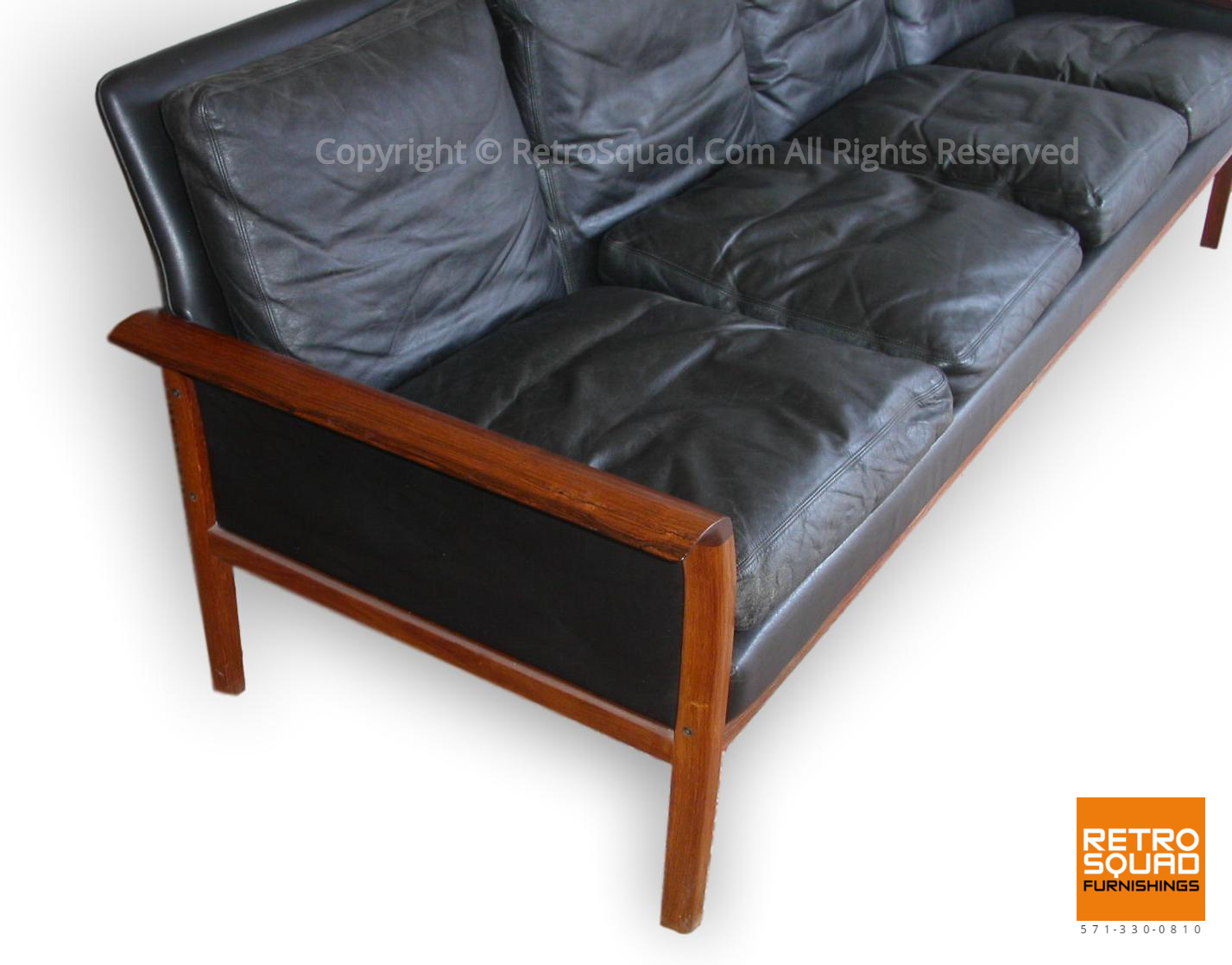 Brazilian Rosewood & Leather 4 seat Sofa Designed By Knut Saeter or Hans Olsen For Vatne Mobler 06