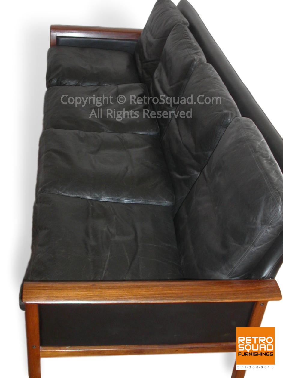 Brazilian Rosewood & Leather 4 seat Sofa Designed By Knut Saeter or Hans Olsen For Vatne Mobler 07